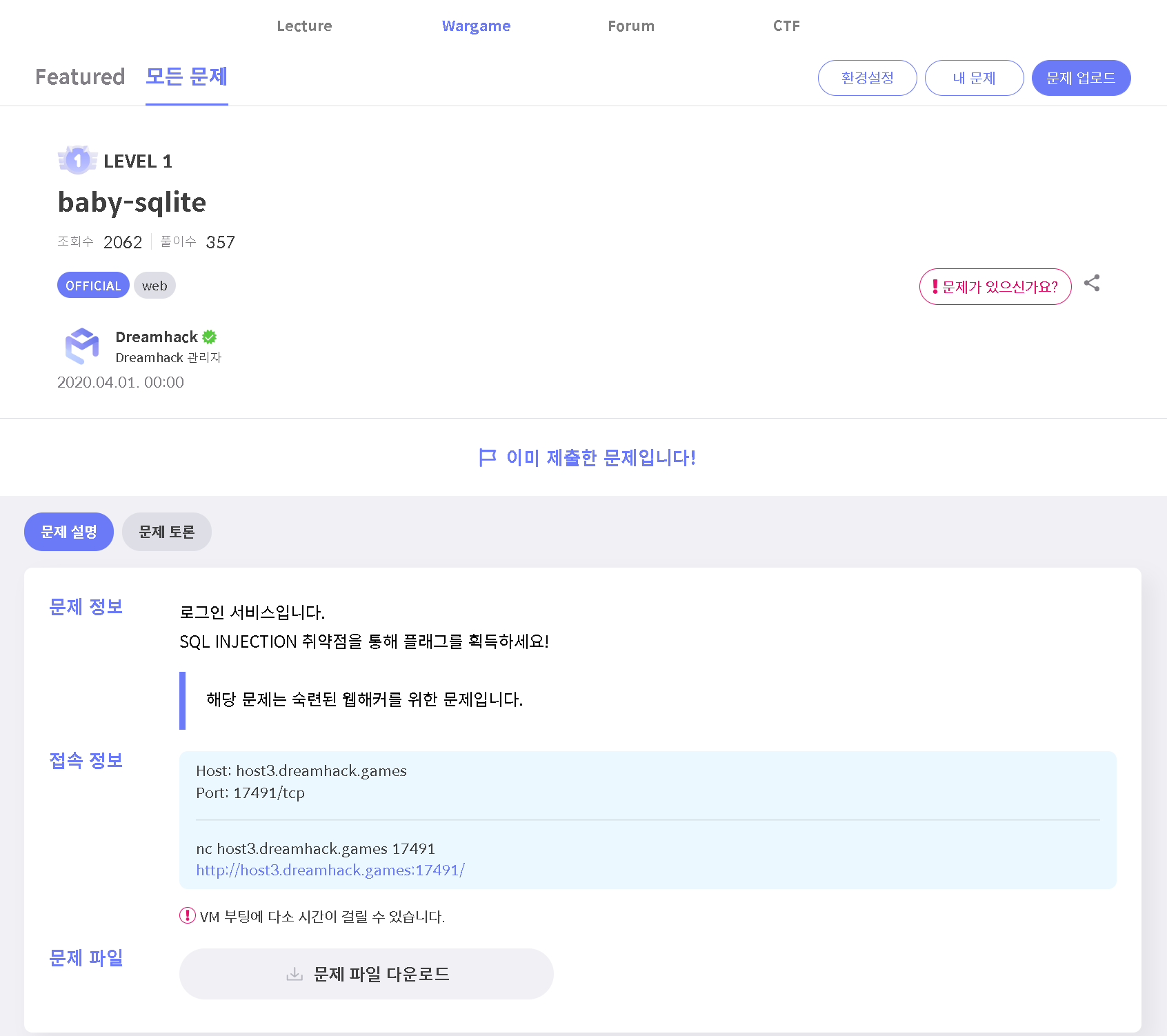 | [DreamHack] blind sql injection advanced 문제풀이 (1) | 2022.11.24 |