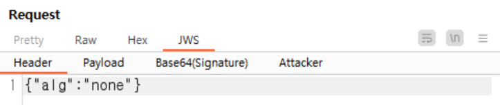 Header의 'alg' 알고리즘 정보를 'none'으로 수정합니다.