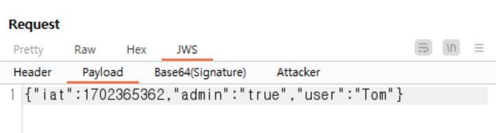 Payload 정보를 우회해서 'admin'으로 시도할 수 있게 하겠습니다.