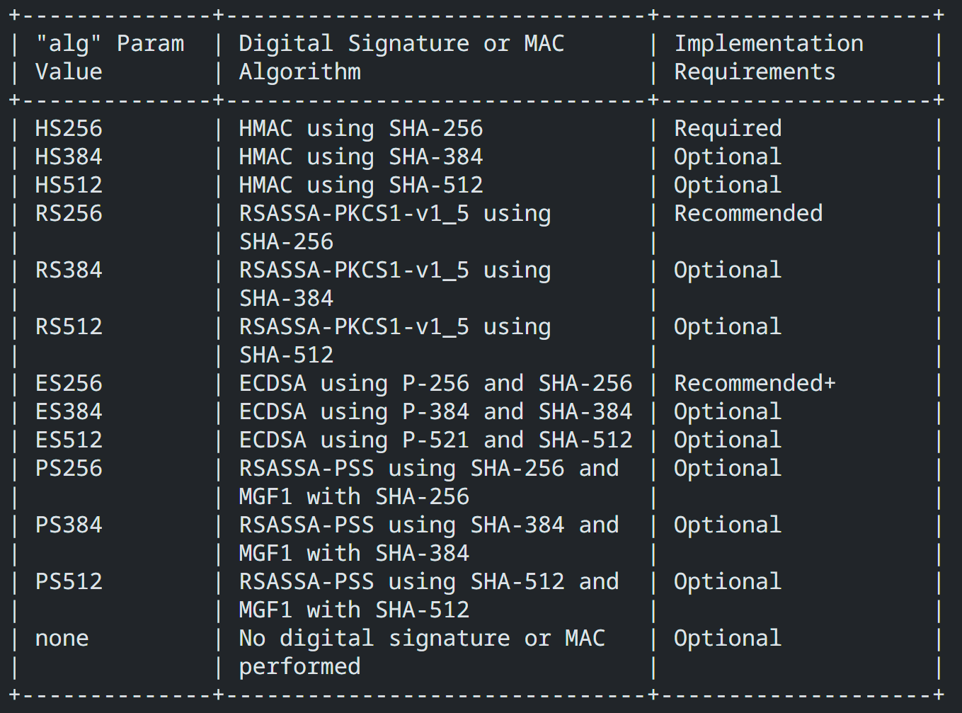 'none' 알고리즘은 signature랑 MAC 서명을 사용하지 않습니다.