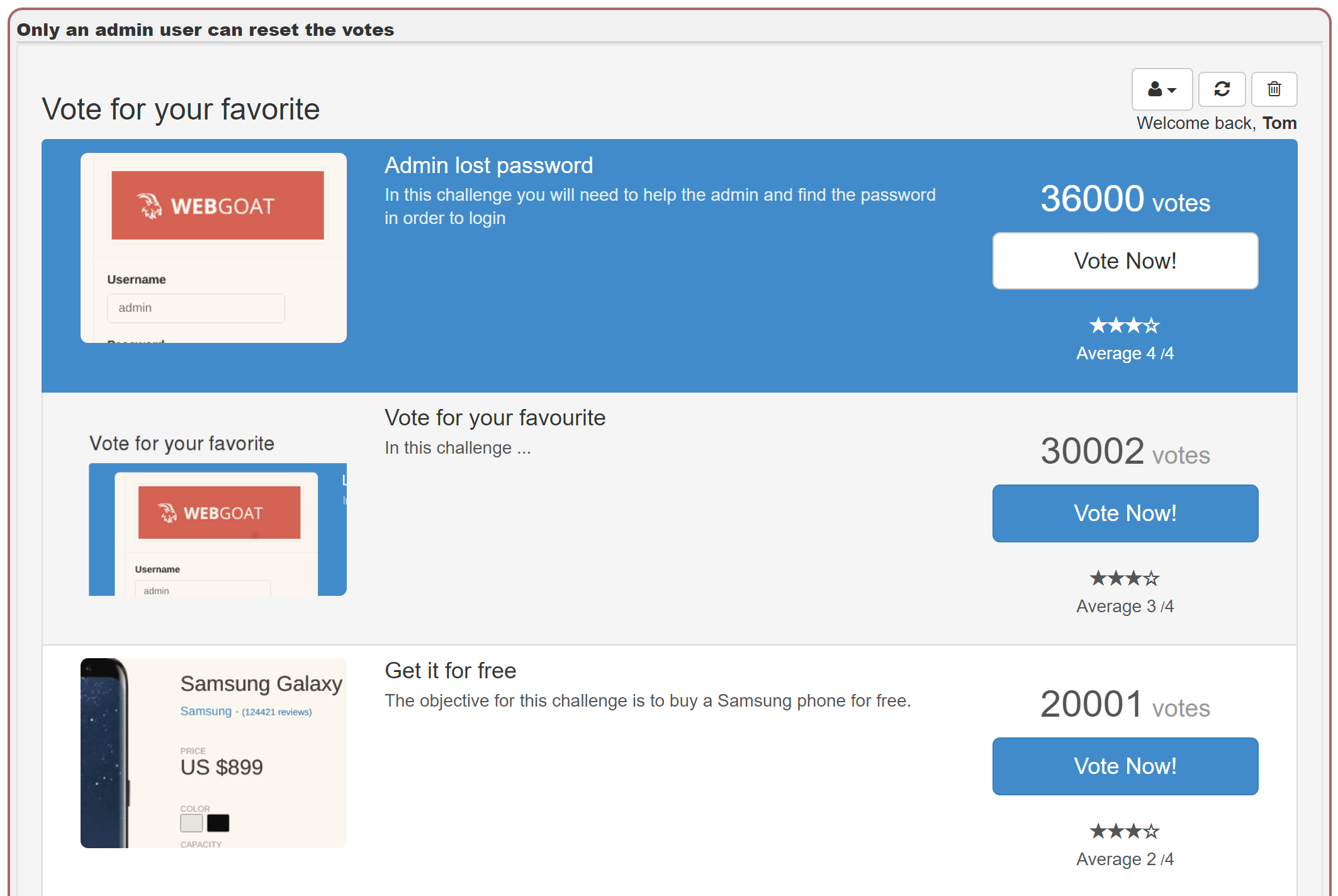 JWT 토큰을 변경시켜서 'admin' 권한으로 투표를 reset 시켜야 하는것 같습니다.
