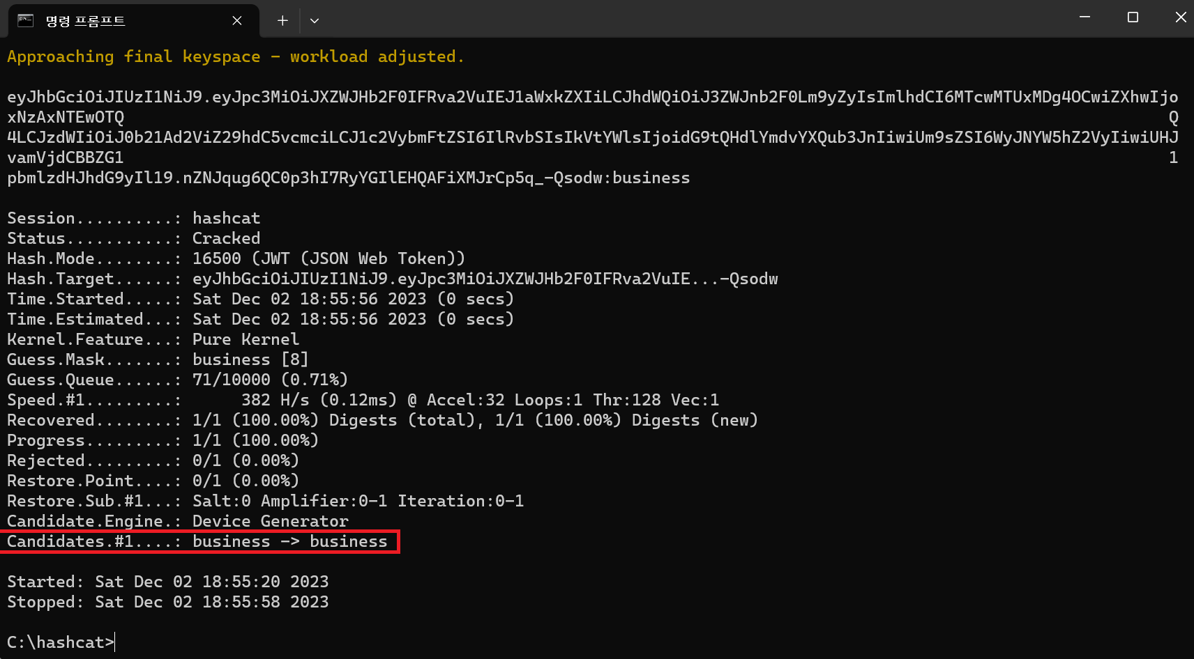'비밀키'는 'business' 인것을 확인했습니다!!