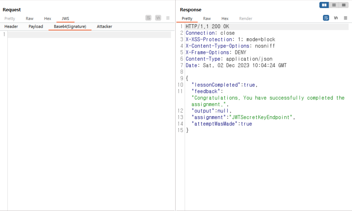변경된 [Header/Payload/Signature] 을 입력해주면 성공하게 됩니다.