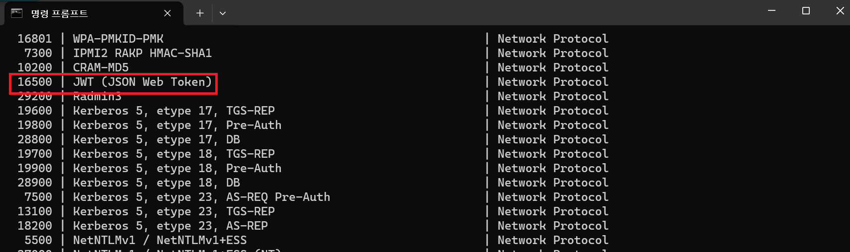 jwt.txt의 JWT 토큰에 JMT 해시 모드로 googole-10000-english.txt 사전 대입 공격을 실행시킵니다.