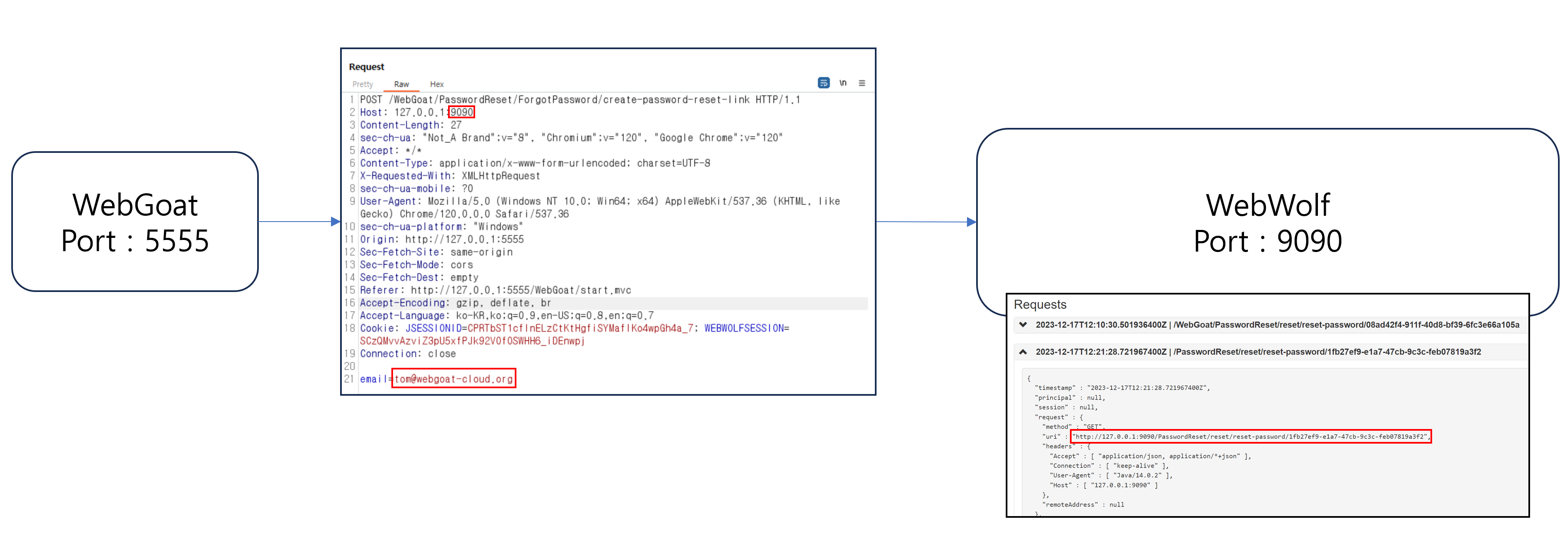 패스워드 리셋 링크를 우리가 사용하고 있는 WebWolf(port:9090)로 전송할 것 입니다.
