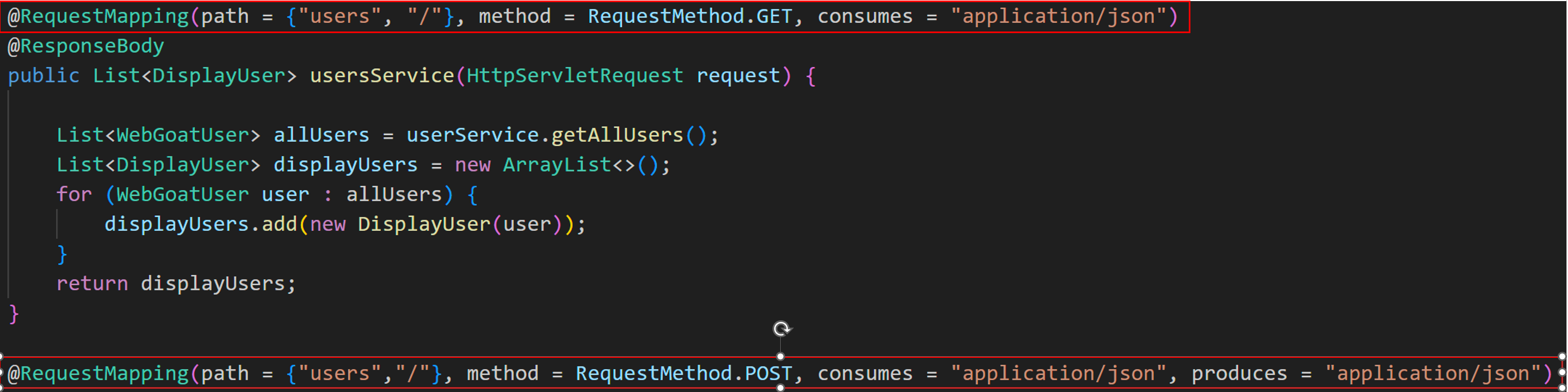 /users는 안돼고 최상위 디렉토리가 /WebGoat이니까