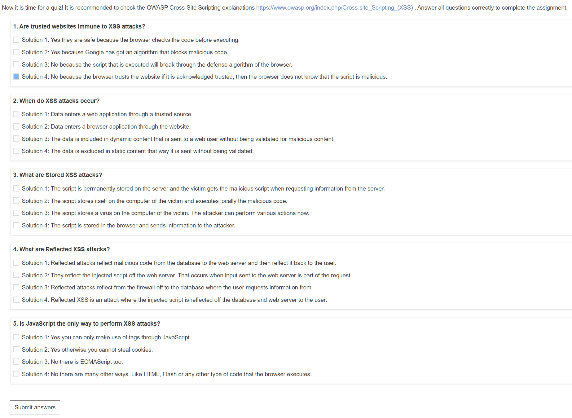 해결 방법 4: 반사 XSS는 삽입된 스크립트가 데이터베이스와 웹 서버에서 사용자에게 반사되는 공격입니다.