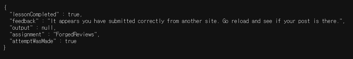 return success(this).feedback("csrf-review.success").build(); //feedback("xss-stored-comment-failure")