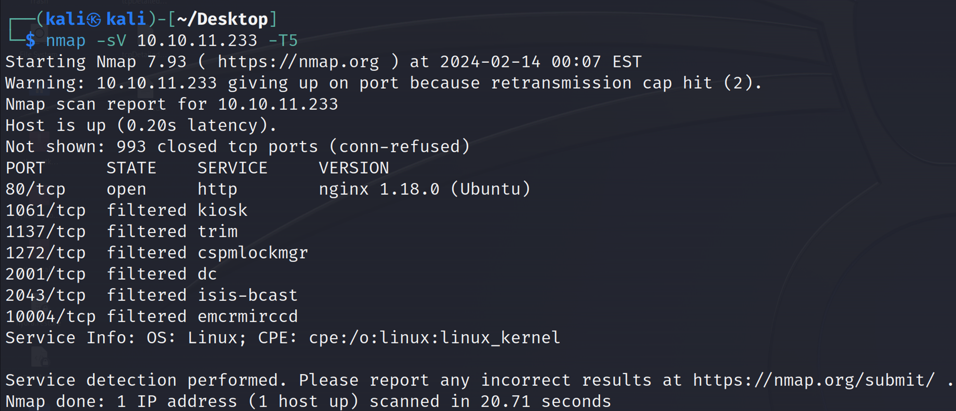 nmap -sV 10.10.11.233 -T5