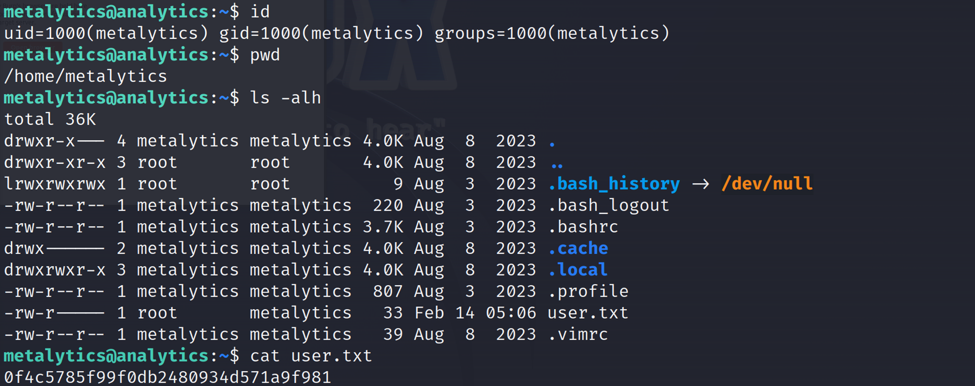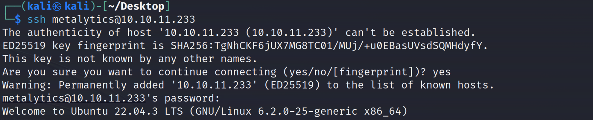 ssh metalytics@10.10.11.233