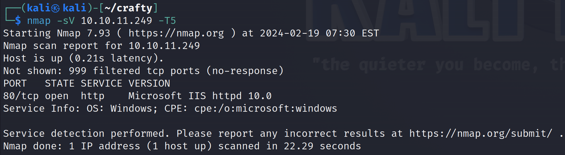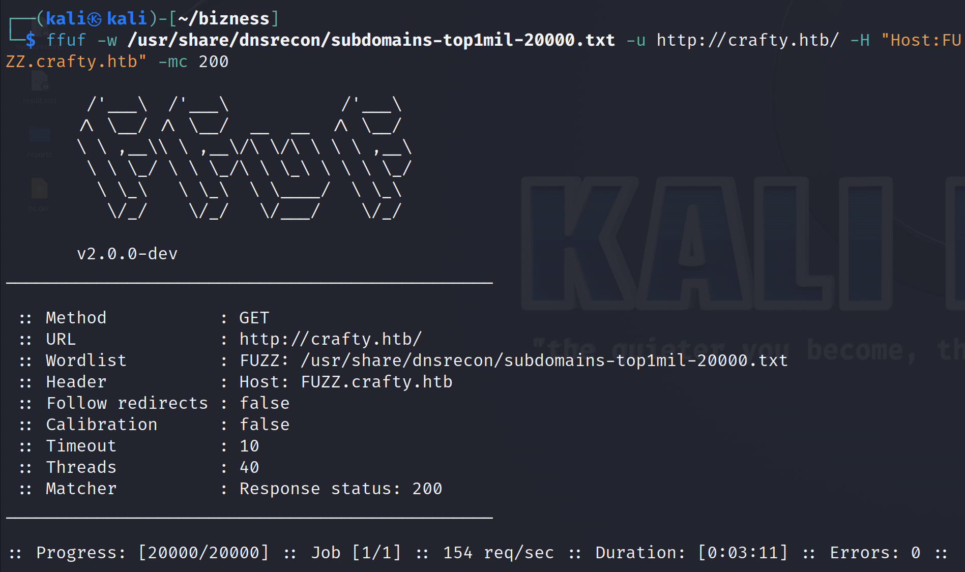 '80'번 포트로 접속해봤는데 play.crafty.htb도 접속도 안되고 딱히 정보가 없음.