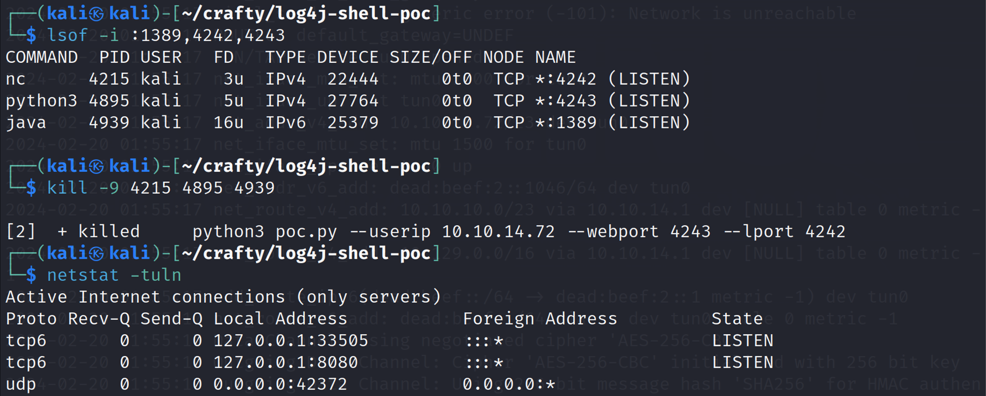 poc.py 이미 실행해서 1389, 80번 포트를 사용중이어서 kill 해줘야됨.