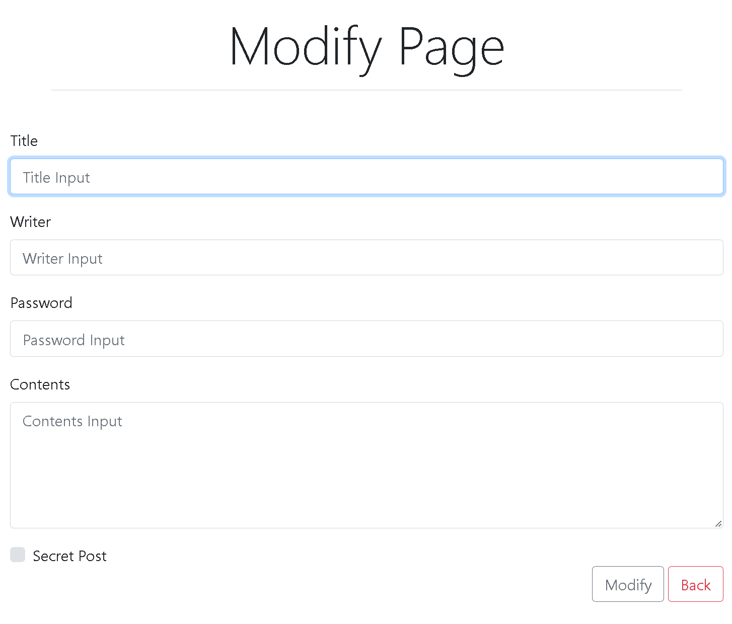 - 수정/삭제 전 패스워드를 입력해서 접근 권한을 얻고 수행할 수 있다.