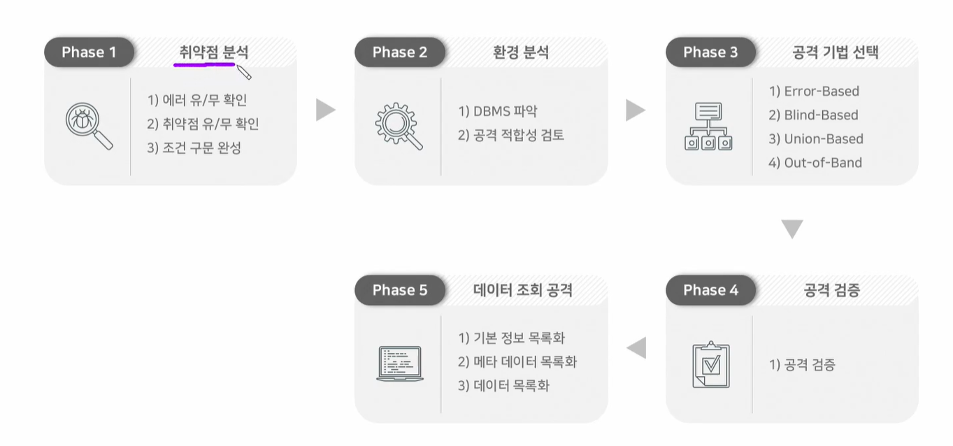 웹에서 사용하고 있는 DBMS(mysql, mssql, oracle, ...)을 파악해야 적절한 인젝션 공격을 할 수 있다.