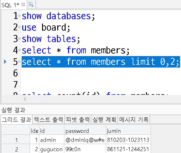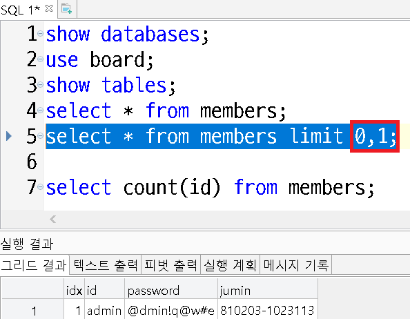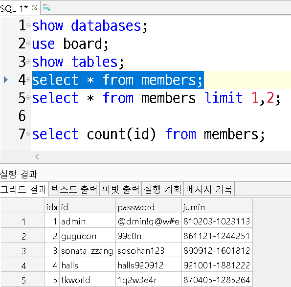 MYSQL 순차적 레코드 출력 실습 본문
