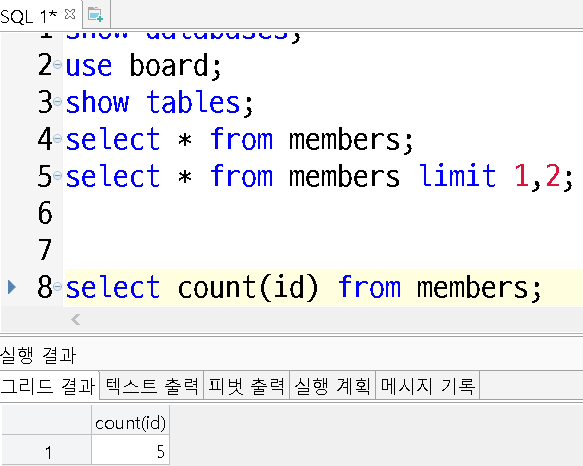 count()함수로 레코드의 개수를 알 수 있다.