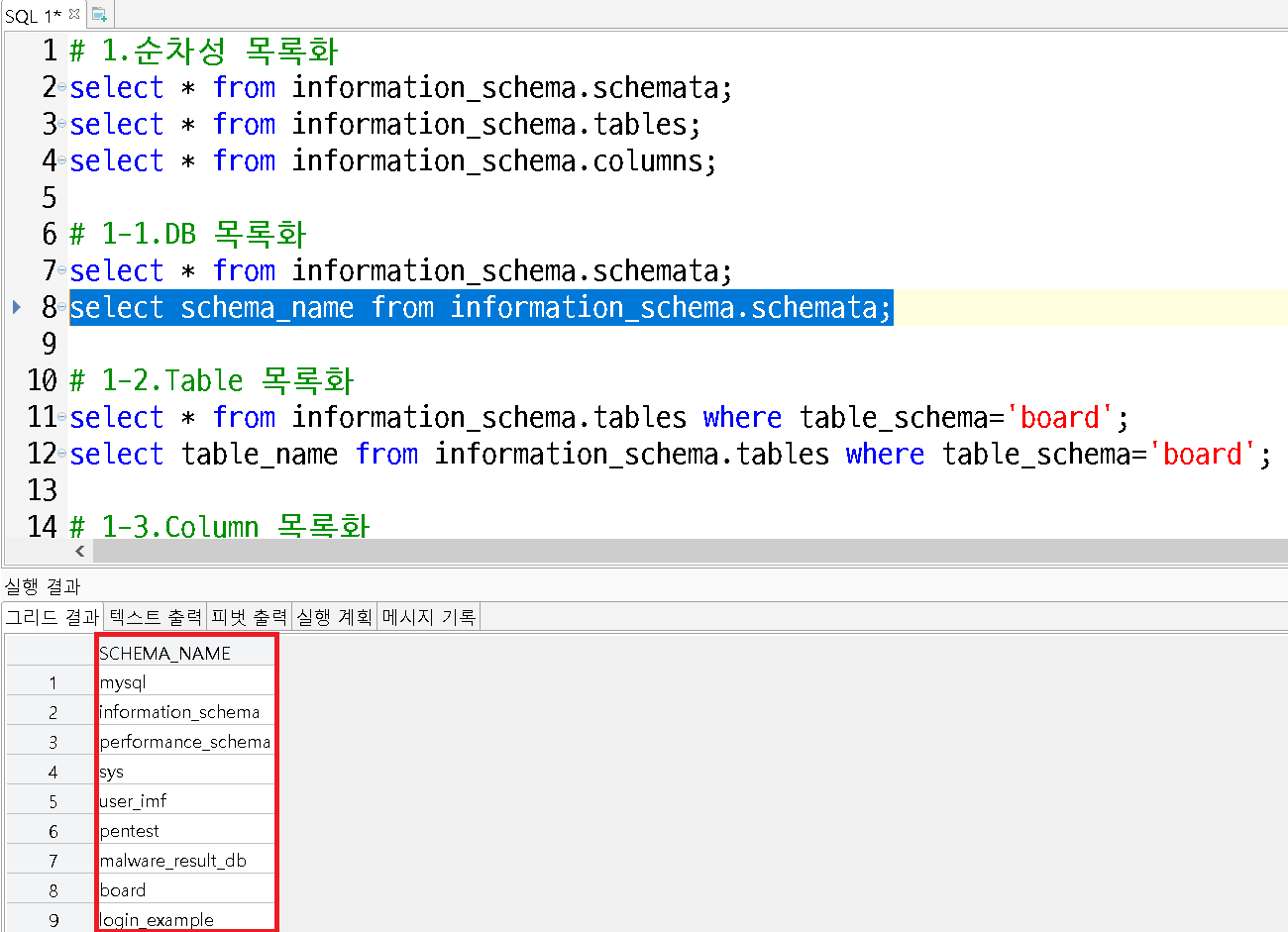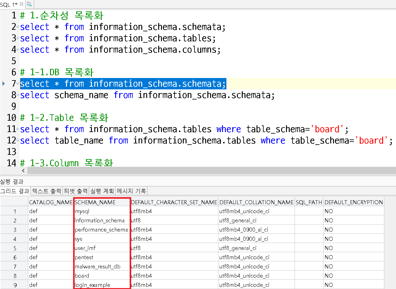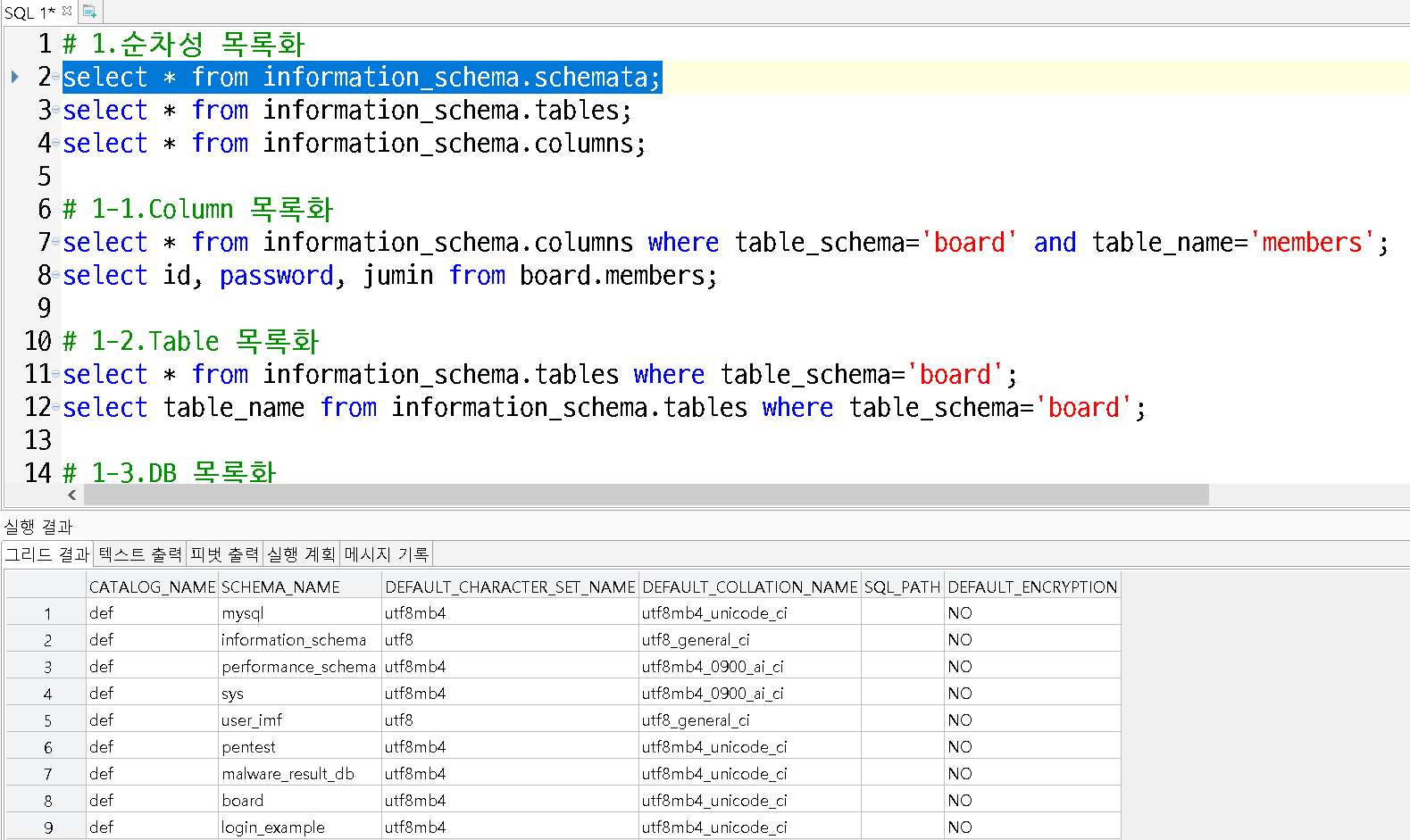 select * from information_schema.schemata (db조회)