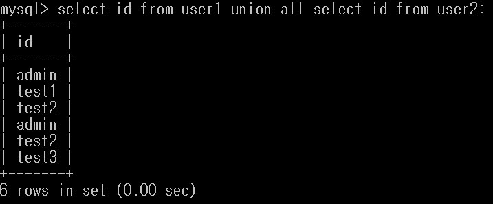 - 그래서 중복을 제거하는 union 보다 속도가 빠르다.