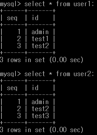 - seq : 1 / id : admin 은 중복이어서 제거