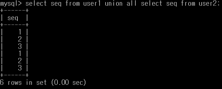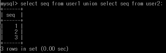 select seq from user1 union select seq from user2;