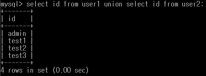 select id from user1 union al l select id from user2;