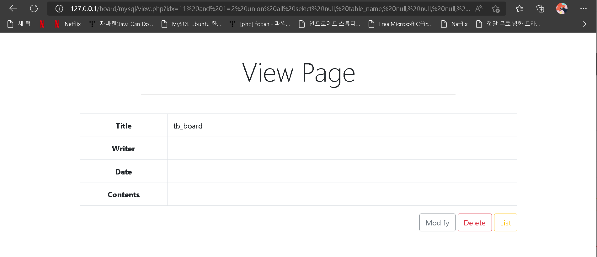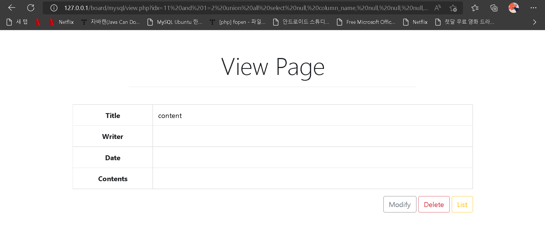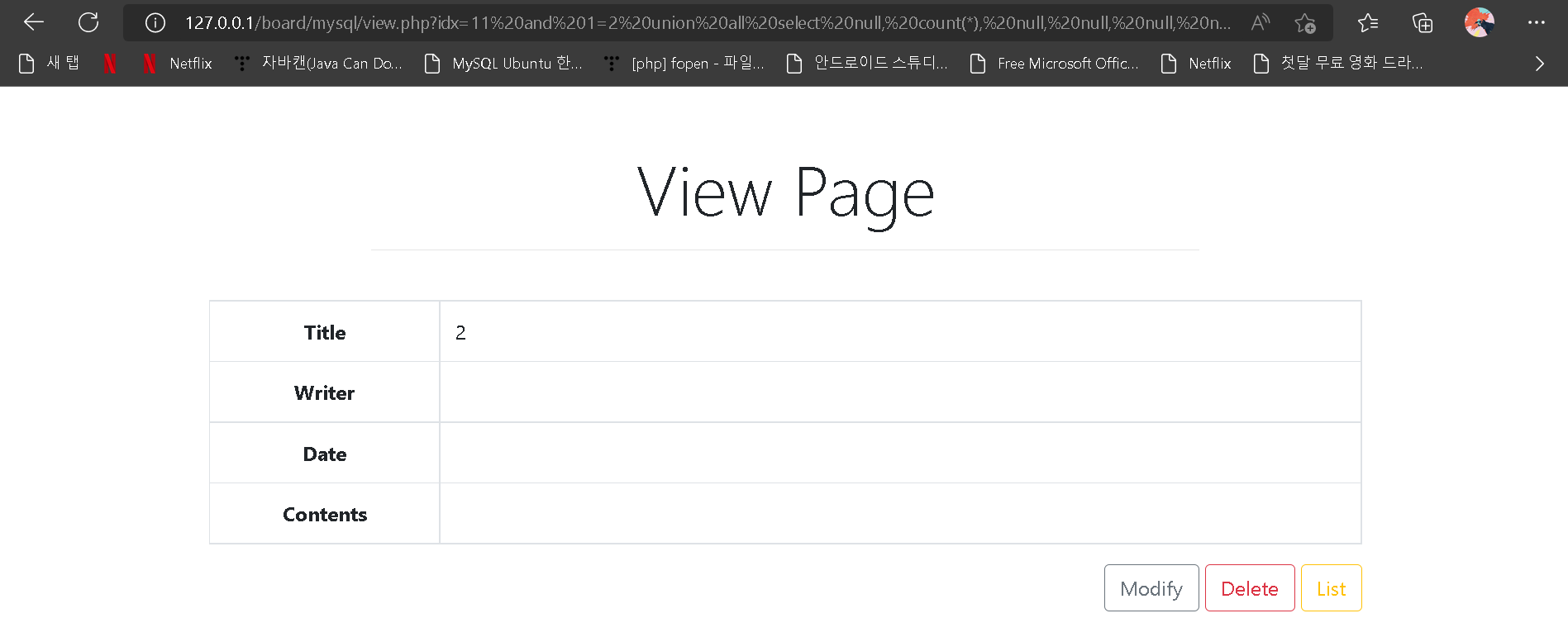 MYSQL UNION-BASED 공격 실습, 목록과 상세보기의 기능적 차이 본문