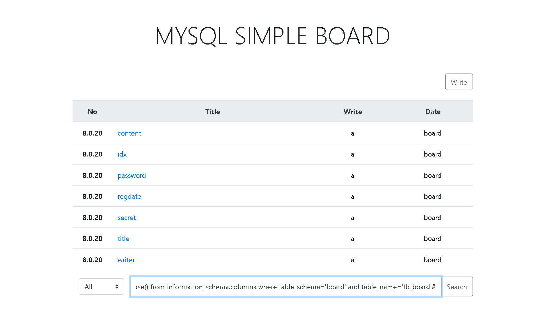 - information_schema.columns에서 DB이름이 'board'이고 Talbe이름이 'tb_board'인 컬럼을 조회