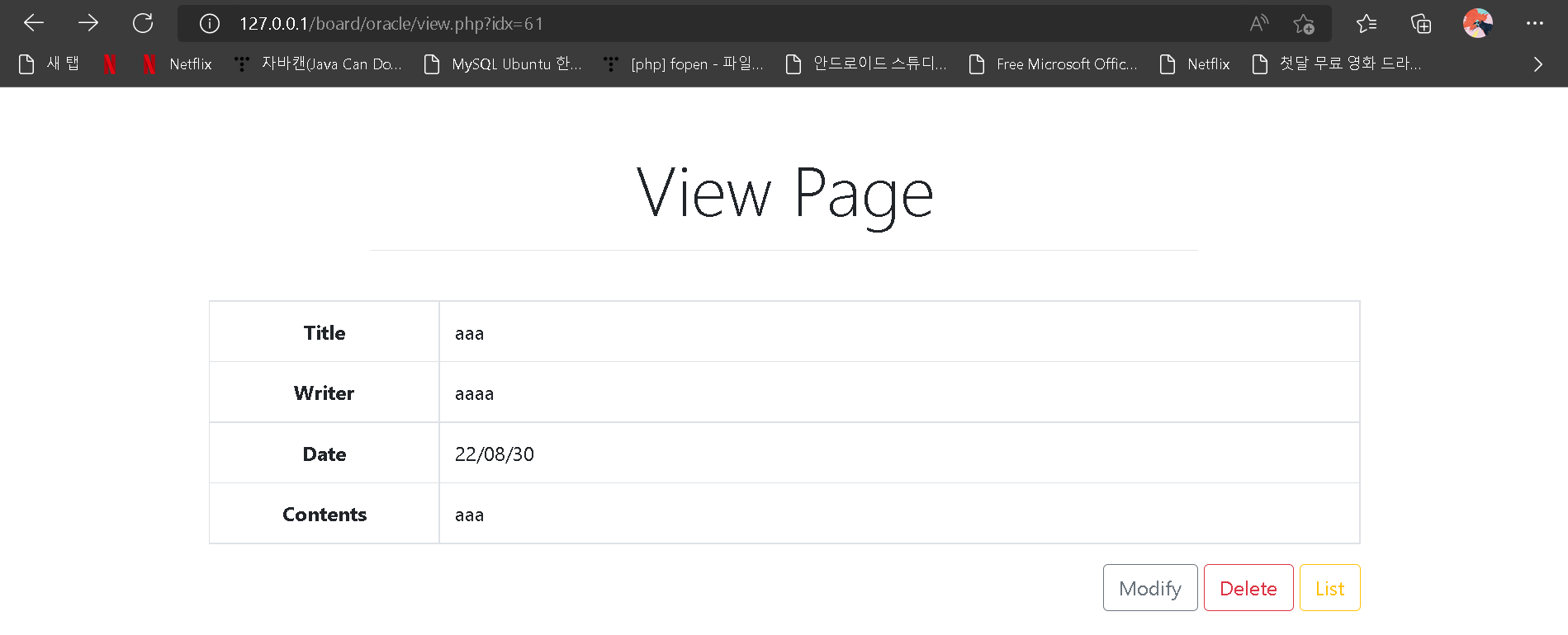 - 사용자(DB) 문자열 수가 14개라서 게시판 내용이 출력되는걸 확인할 수 있다.