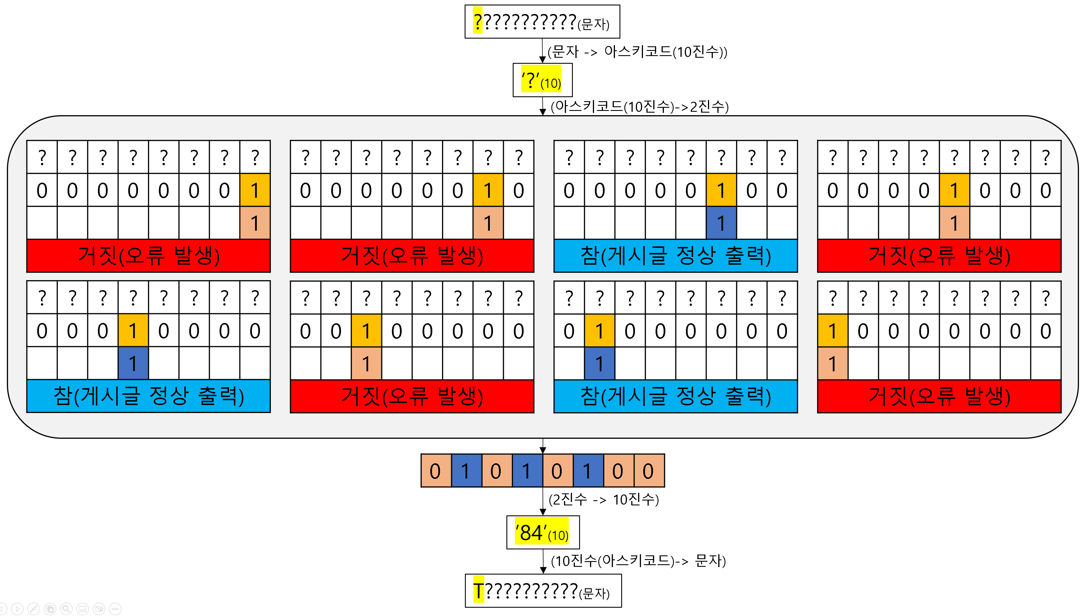 거짓이면 오류가 뜰거니까 비교해가면서 답을 유추할수 있다.