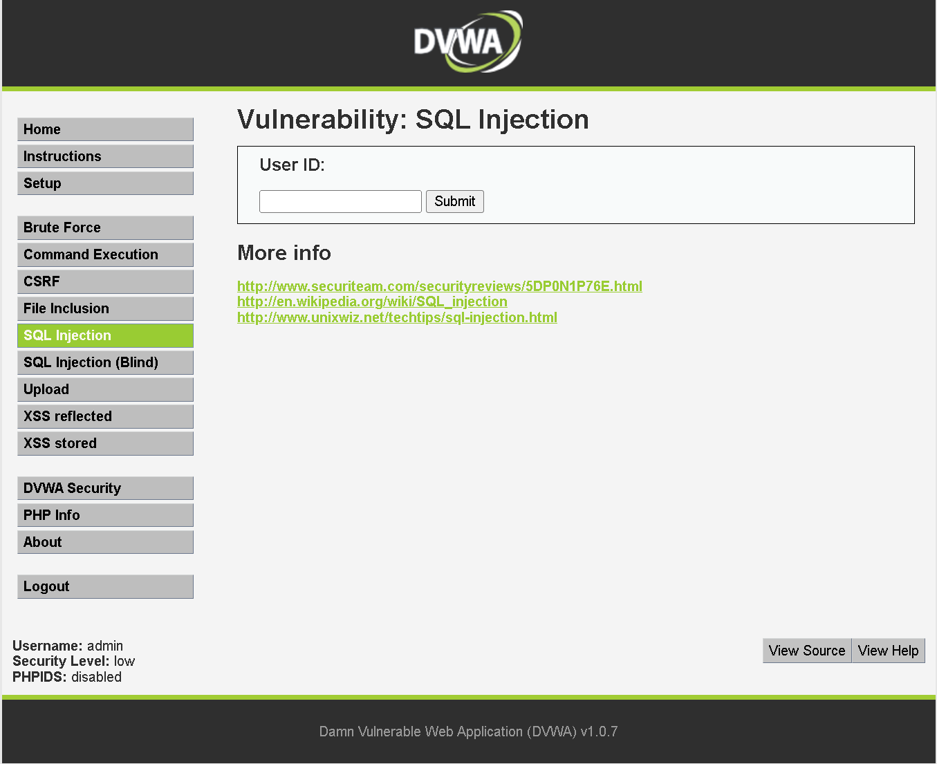 | [DVWA] SQL INJECTION 실습 (Low Level) (0) | 2022.09.04 |