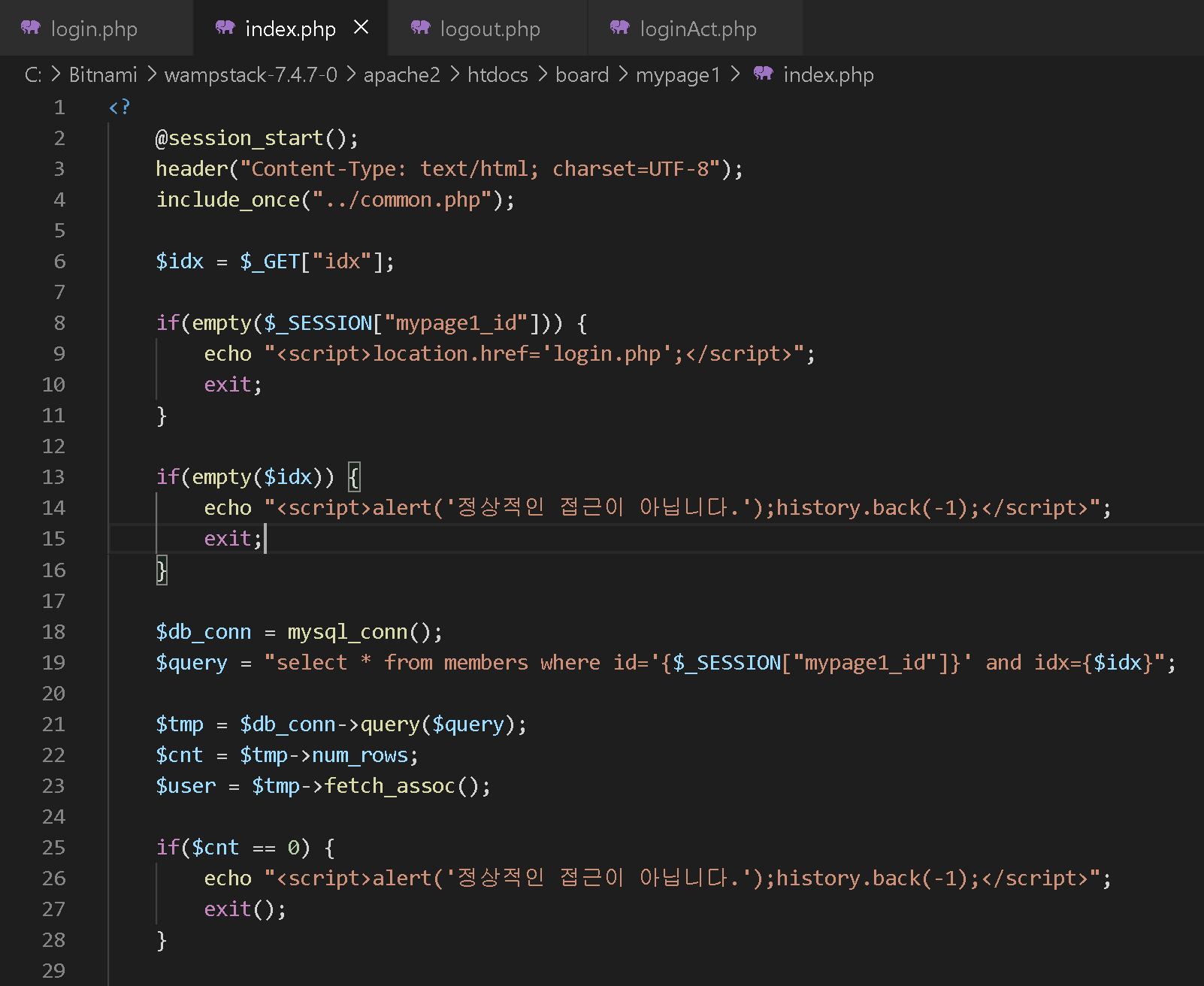 select * from members where id='$_SESSION["gugucon"]' and idx=2